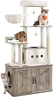 - ✅ Duale Funktionalität: Platzsparende Kombination aus raumhohem Kratzbaum und blickdichtem Schrank für das Katzenklo oder Zubehör.